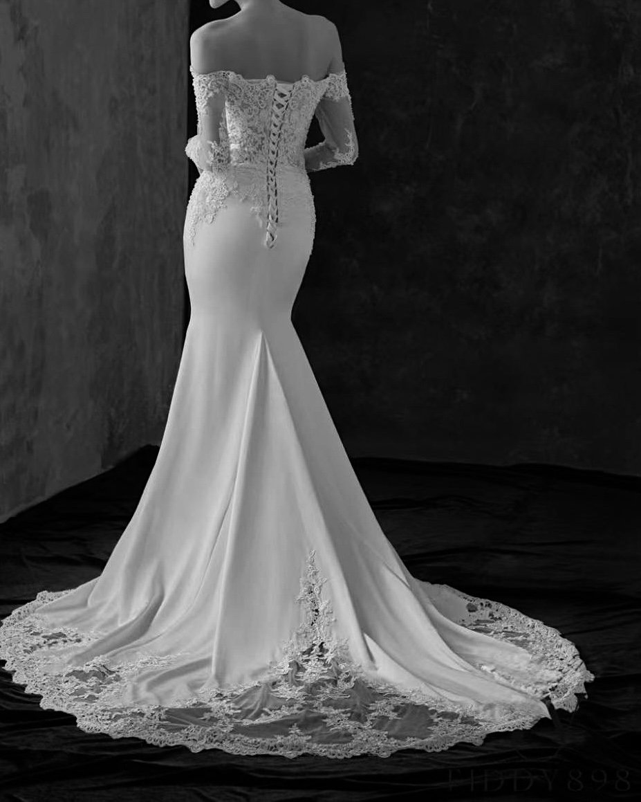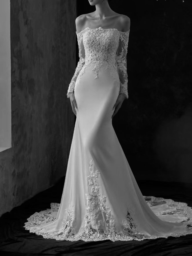 Detachable lace sleeves offer a convertible silhouette without altering the gown’s structure.
